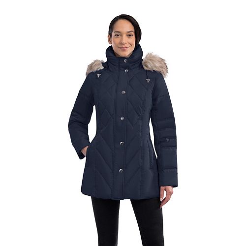 Women's TOWER by London Fog Hooded FauxFur Down Puffer Coat